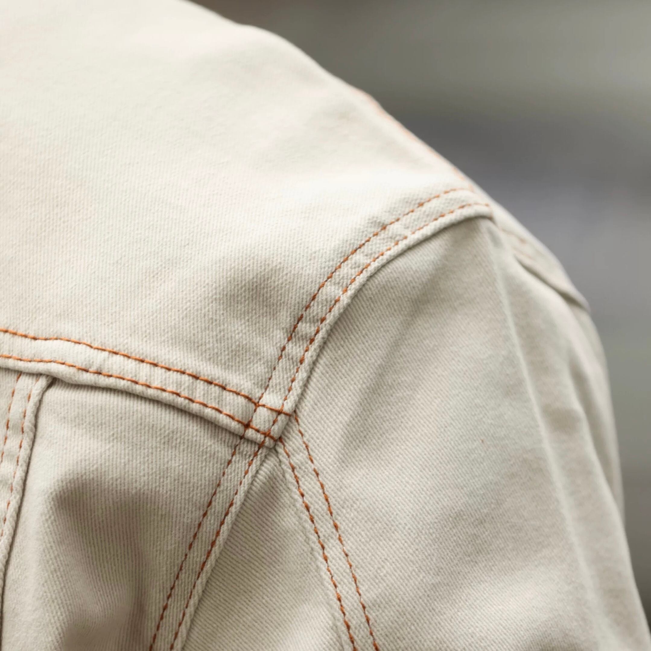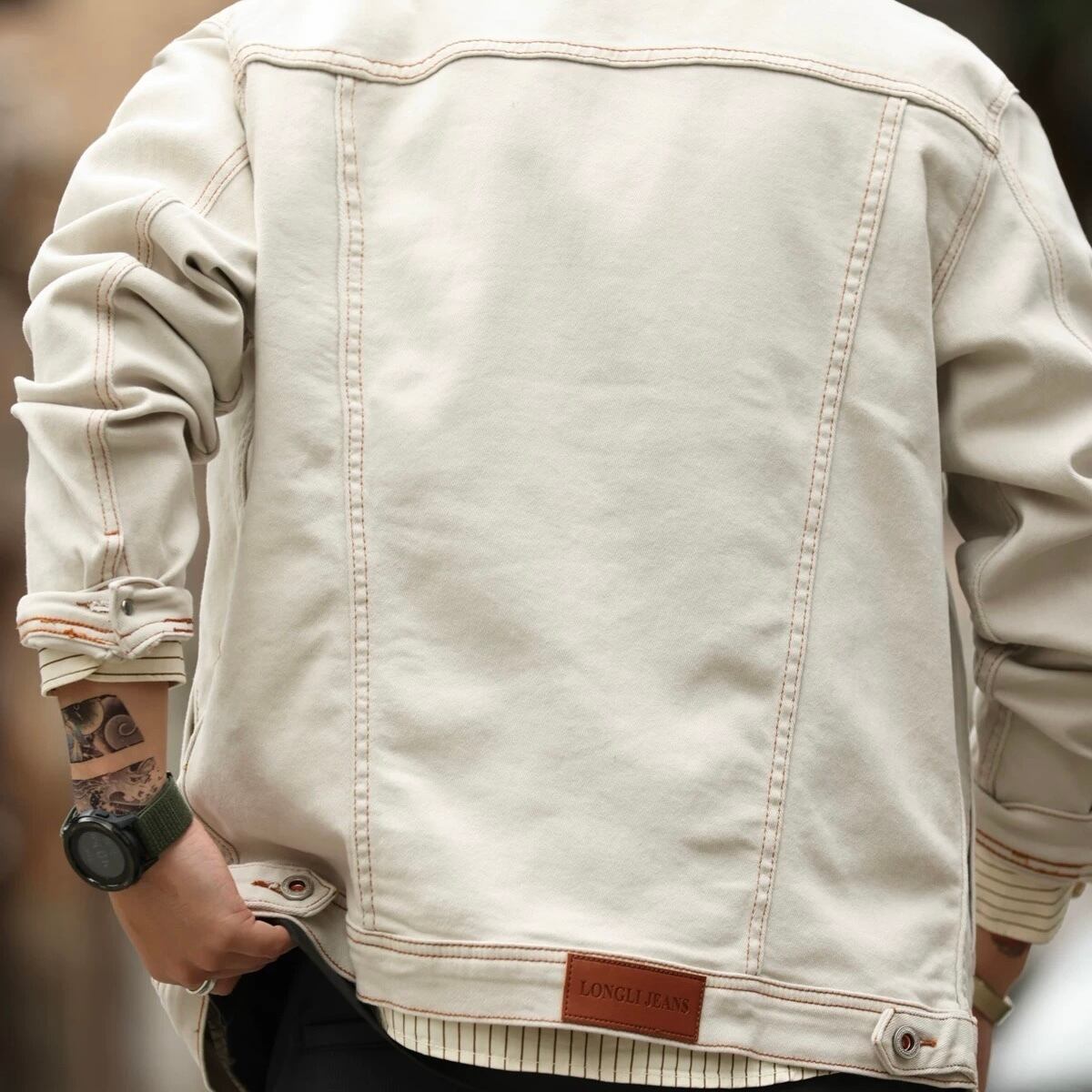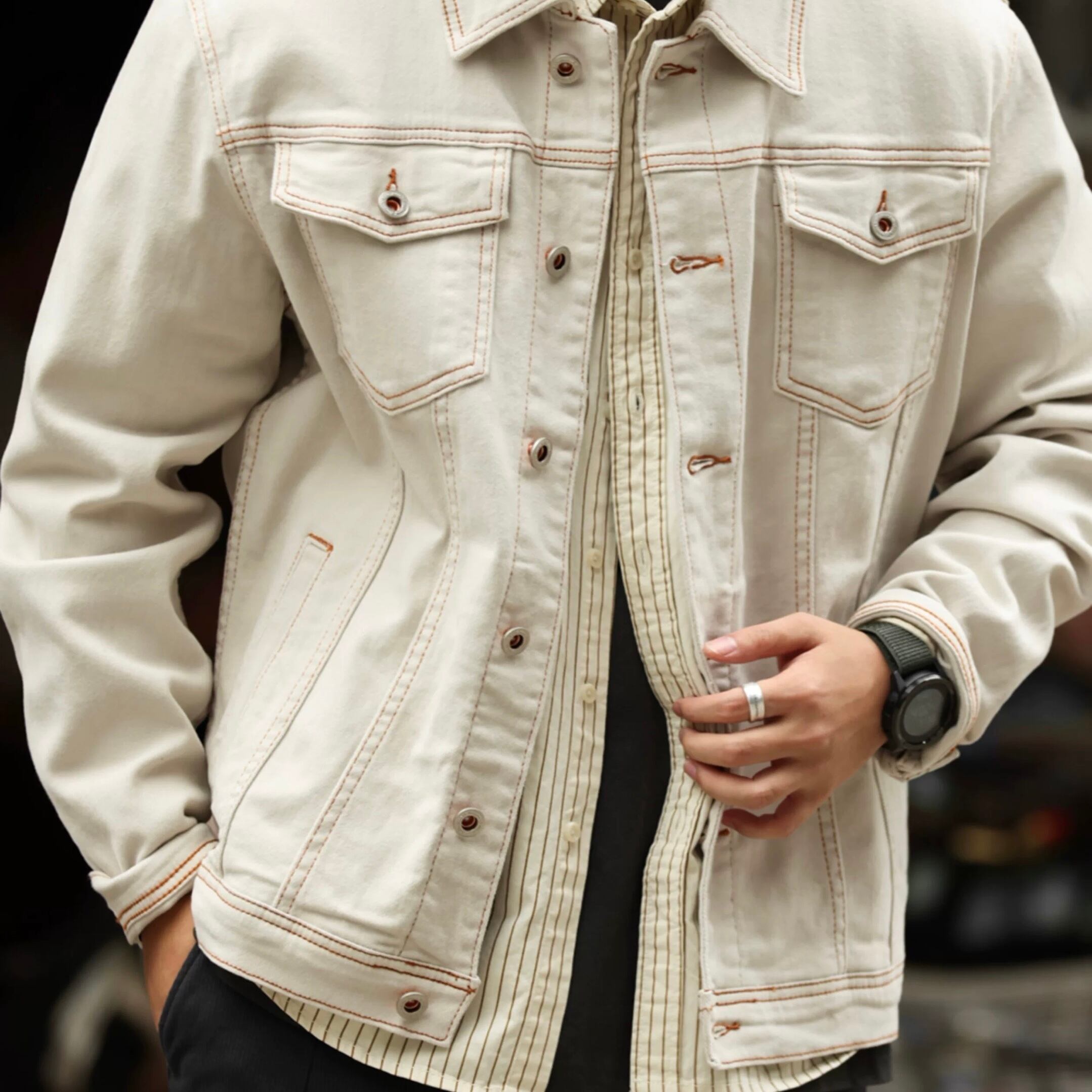 カジュアルスタイルに深みを与えるホワイトデニムジャケット。