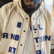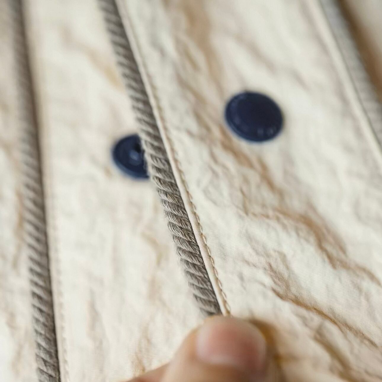 少しシワのあるナイロン生地がヴィンテージ感を演出し、ブルーのロゴがポイントです。