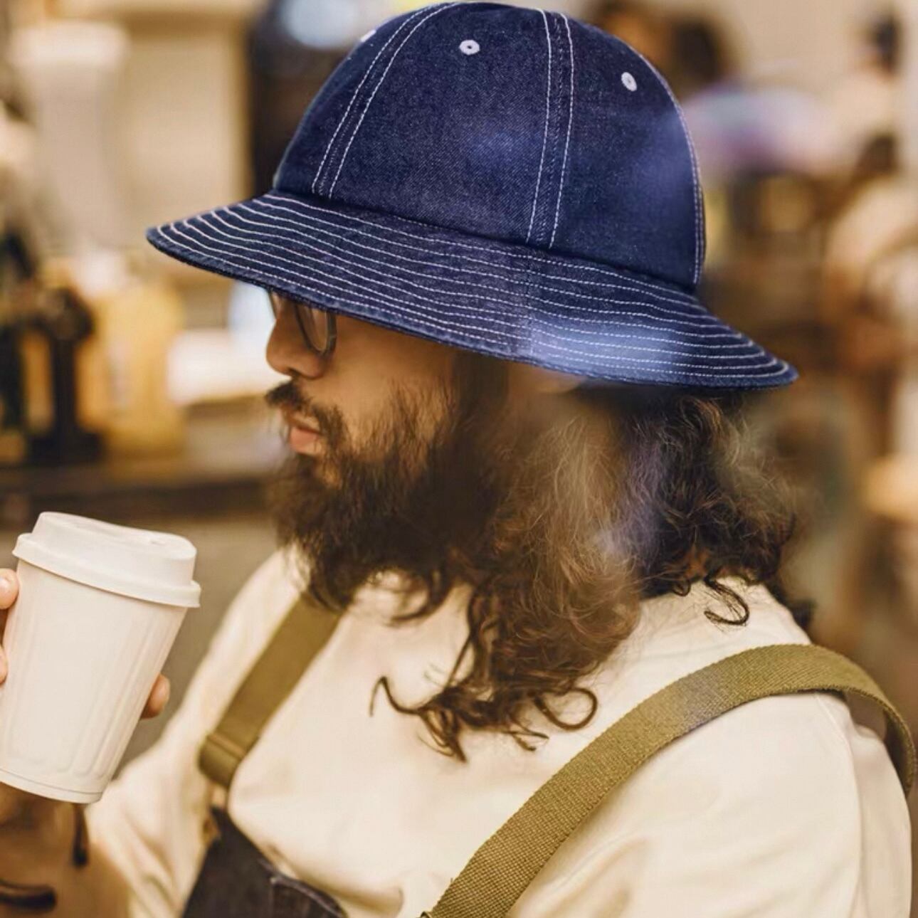 アメリカンレトロなデニムのバケットハット。
