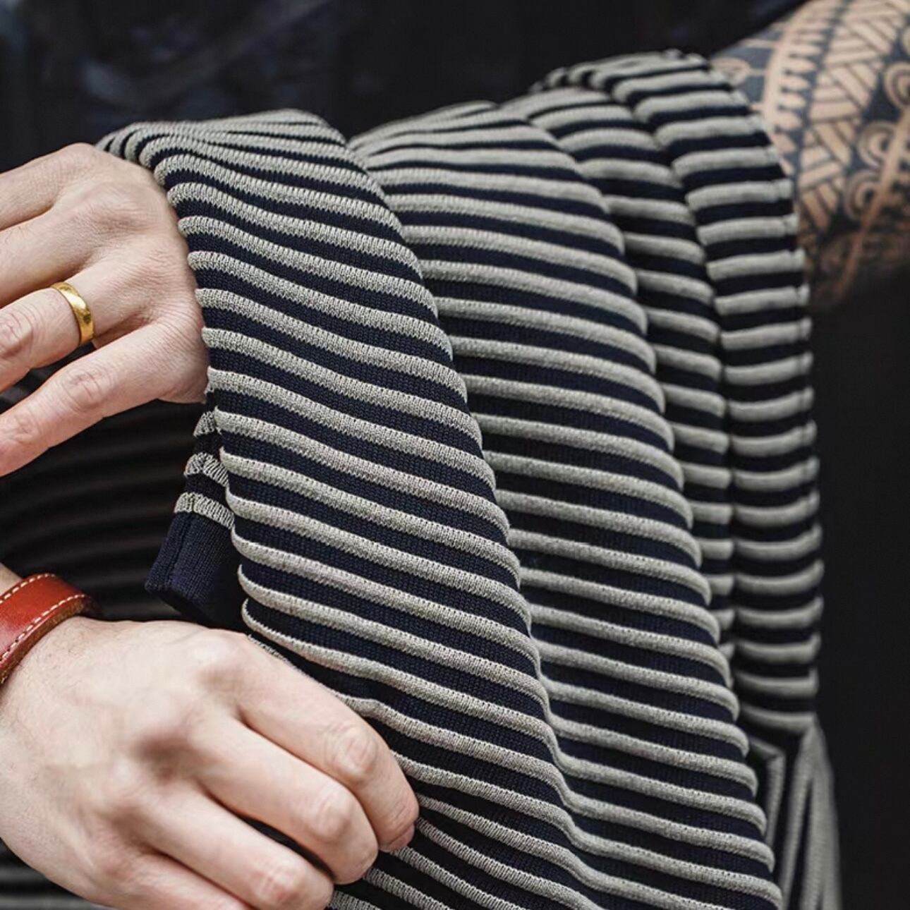 ネイビーとグレーのボーダー柄なのでモノトーンのアイテムとも相性が良くオススメです。