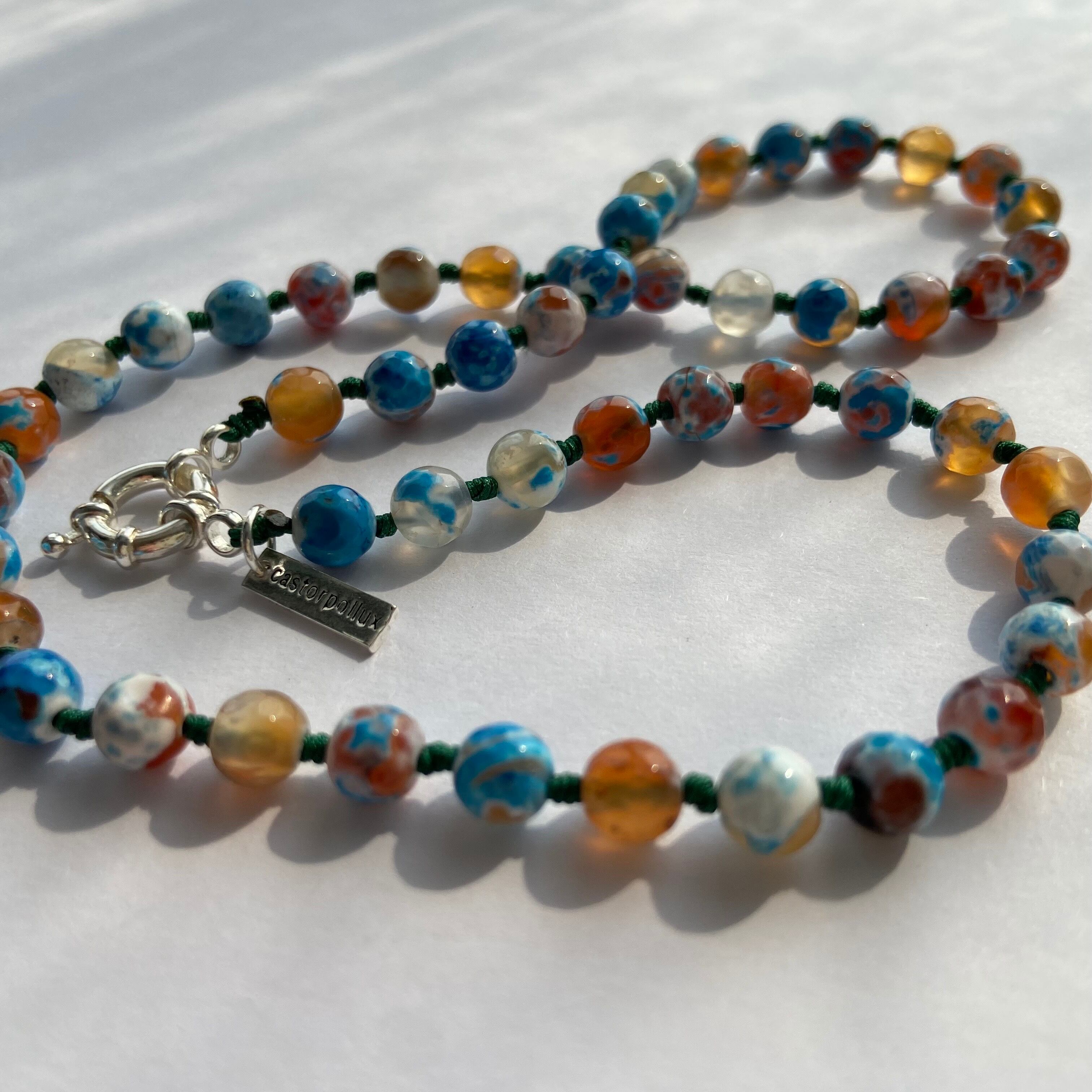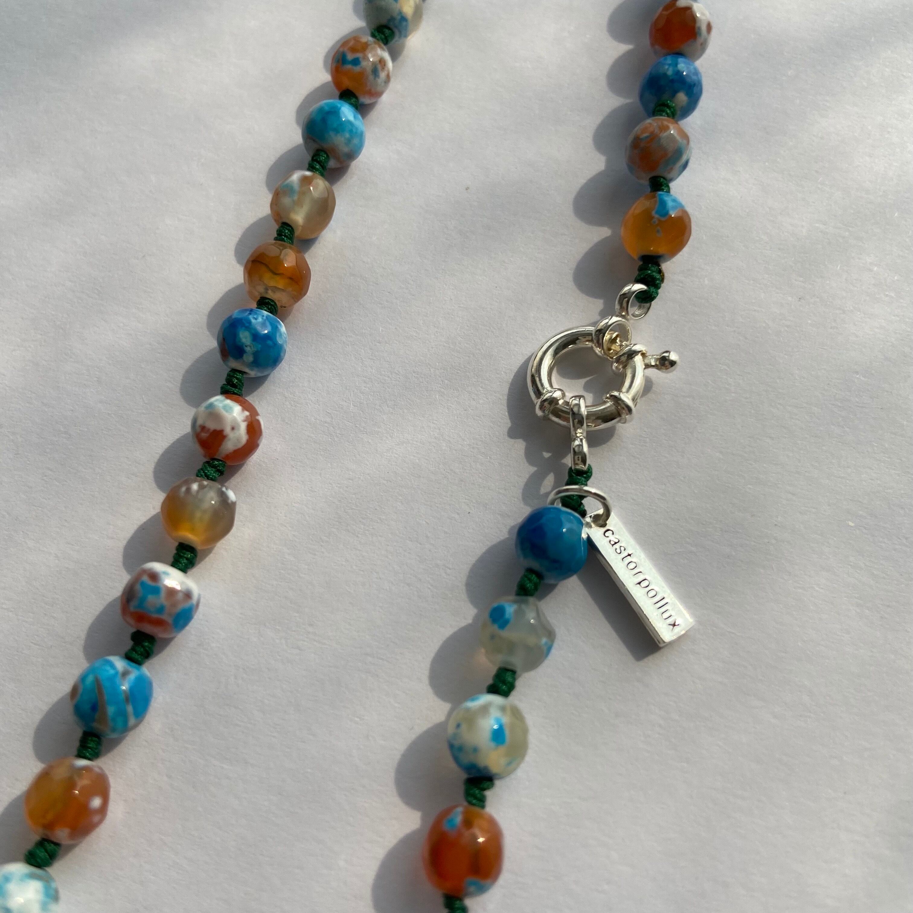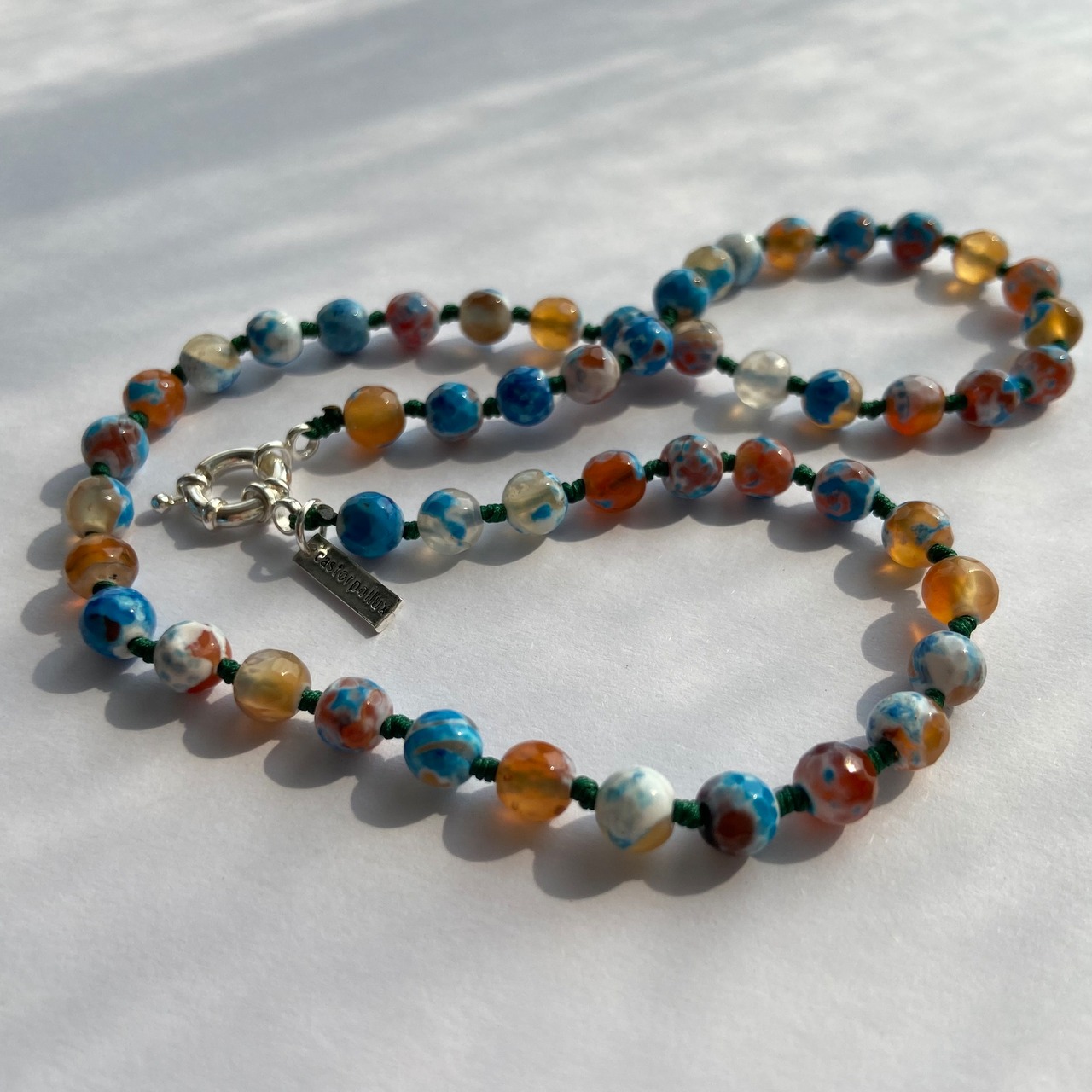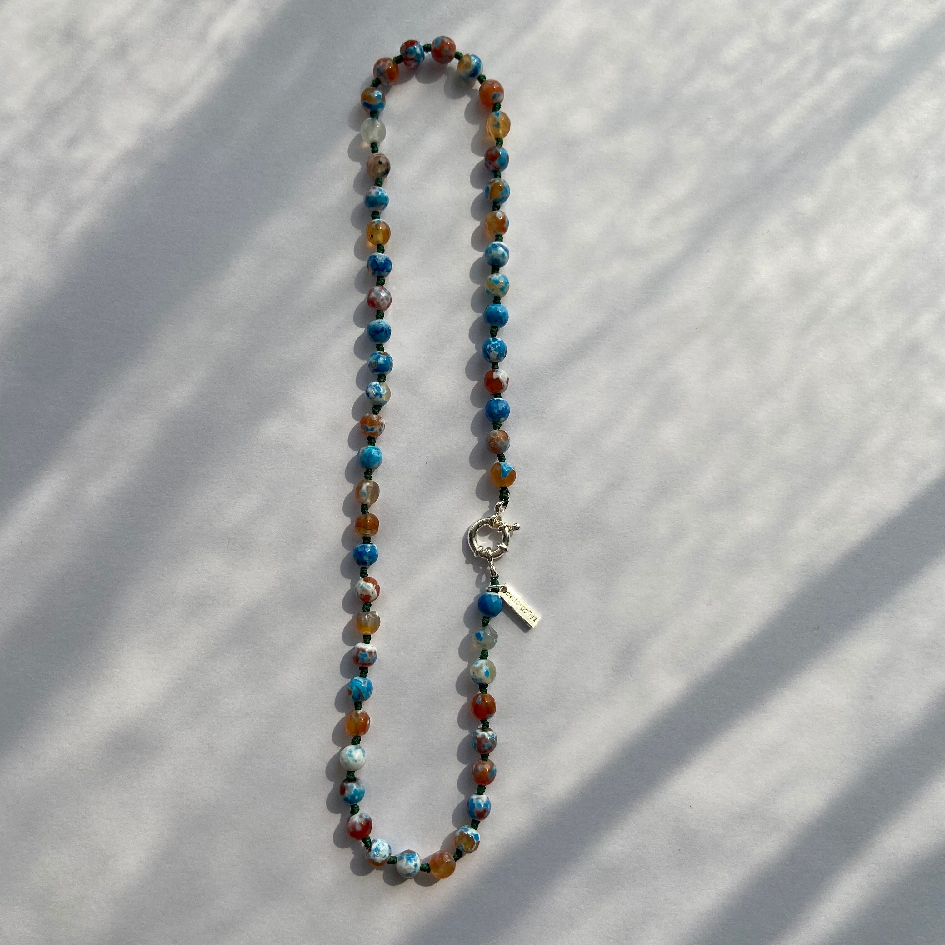 海に沈むサンセットの風景をそのまま石に閉じ込めたような美しい天然石メノウのネックレスです。